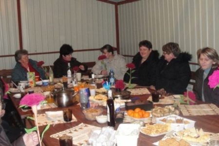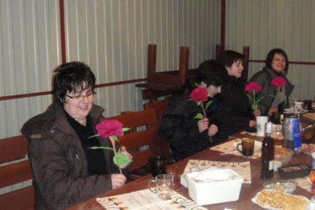 8 marca o godz.17.00 zebrały się wszystkie chętne Panie, aby uczcić swoje Święto. Każda z Pań przygotowała coś"pysznego". We wspólnym towarzystwie szybko mijał czas. Największą atrakcją wieczoru był przybyły na miejsce świętowania sołtys P. Henryk Górkowy, który wręczył każdej z Pań piękną różę, wykonaną z bibuły.