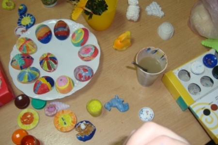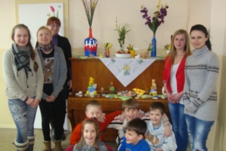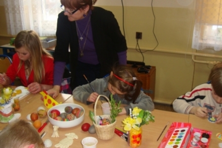 Pod okiem Pani Krysi młodzież z zapałem tworzy kolorowe pisanki, zajączki, baranki i inne elementy do dekoracji wielkanocnych stołów i mieszkań.