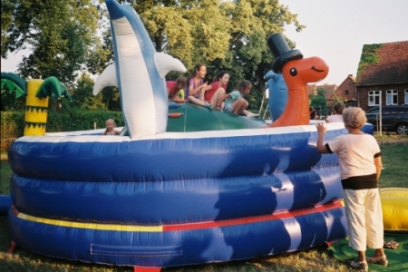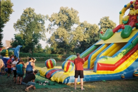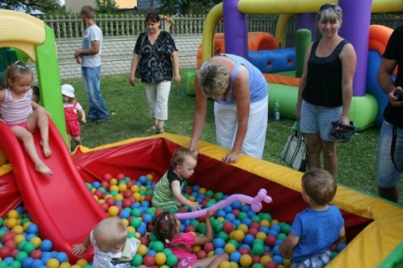 Na uczestników zabawy czekało wiele atrakcji: dmuchana zjeżdżalnia, góra wspinaczkowa, kącik dla malucha, tatuaże z henny, malowanie twarzy, modelowanie balonów oraz zabawy chustą animacyjną i pokaz zumby pod okiem instruktorki p. Edyty Grzybkowskiej. Serwowano też dania z grilla.