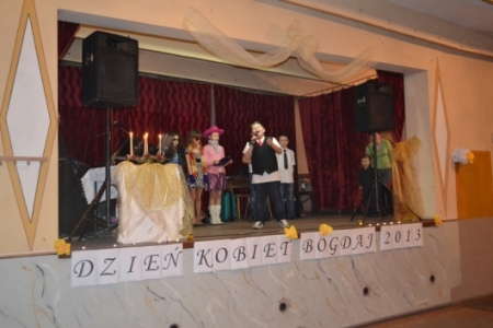 Po posiłku przyszła kolej na występy. Jako pierwsi zaprezentowali się na scenie uczniowie Szkoły Podstawowej w Bogdaju, którzy przedstawili krótki program artystyczny, przygotowany specjalnie na tę okazję. Największy aplauz publiczności, piosenką „Baby, ach te baby”, zdobył Konrad Pachura. Muzycznymi talentami popisało się również troje innych chłopców: Marcel Kruszyk, Miłosz Pilarski i Mateusz Mus, którzy ułożyli autorską piosenkę o kobietach - pełną humoru i dowcipu. Natomiast gwiazdą wieczoru była pani Janina Smoliga-Rysz, która pochodzi z Bogdaju i obecnie tu mieszka. Ma na swoim koncie występy na festiwalu w Kołobrzegu – mimo tych sukcesów jest bardzo skromną i prostolinijną kobietą. Swoim anielskim, a zarazem mocnym głosem poruszyła wszystkie serca. Zaśpiewała 5 utworów m. in. „Mamo” Wioletty Willas i „Do kołyski” zespołu Dżem. Sposób, w jaki wykonała te wzruszające piosenki świadczą o tym, że pani Janina ma nie tylko piękny głos, ale i piękne wnętrze, które świadczy o jej prawdziwej kobiecości i dobroci.