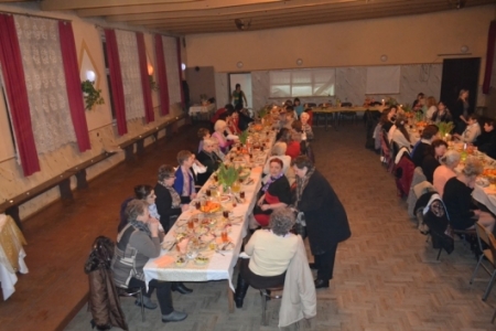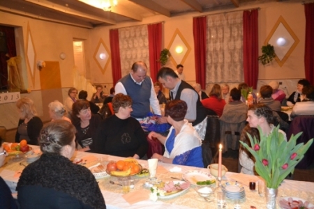 Do życzeń dołączył się również pan Andrzej Posiła, który obdarował wszystkie kobiety wiosennymi tulipanami, ufundowanymi przez OSP Bogdaj. Po części oficjalnej zaproszono wszystkie panie do konsumpcji. Stoły tego dnia były bogato zastawione. W menu znajdował się obiad, ciasto, różnego rodzaju owoce i zakąski. Każda kobieta lubi posłuchać dobrej muzyki, więc zadbano i o to. Czas spędzony przy kawie i cieście umilał zespół Dynakord.