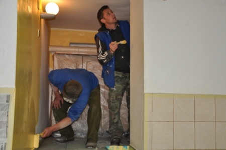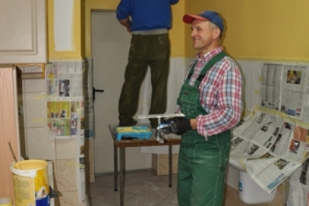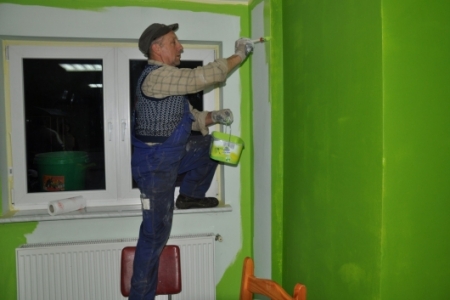 Na przełomie marca i kwietnia mieszkańcy– ochotnicy przystąpili do odnawiania części pomieszczeń świetlicy wiejskiej. Przeciekający w ubiegłym roku dach spowodował wiele szkód, dlatego też konieczne było zdrapywanie, szlifowanie i malowanie ścian oraz sufitów w kuchni, korytarzu a także w toaletach. Prace przyniosły zamierzone efekty– ładnie i estetycznie wyglądające pomieszczenia w przyjaznych kolorach prezentują się teraz wspaniale.