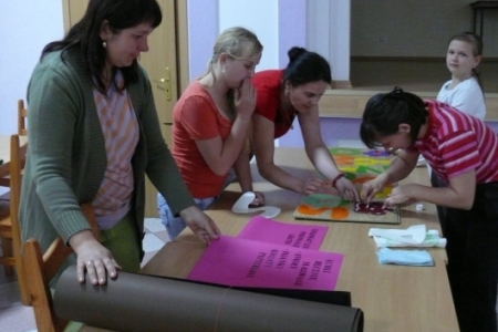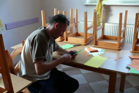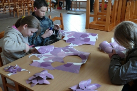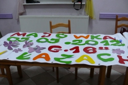 W kwietniu odbyły się dwa spotkania, na których dzieci i dorośli tworzyli dekoracje na majówkę, która odbędzie się 5 maja. Na otrzymanych od pani Małgosi Borkowskiej banerach zostały przygotowane informacje na temat terminu, miejsca organizacji i programu imprezy. Zostały one wywieszone na ogrodzeniu wokół remizy, gdzie zaplanowano święto. Uczestnicy zajęć wykonali również reklamy dla sponsorów, którzy wspomogli organizację majówki a także afisze reklamujące naszą imprezę oraz papierowe kwiaty i chorągiewki.