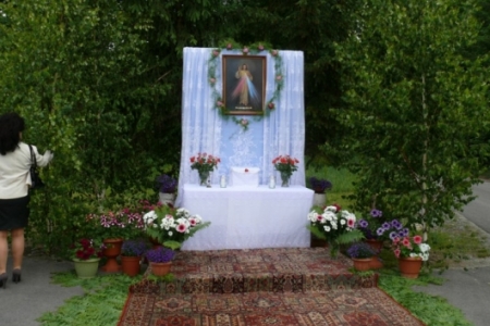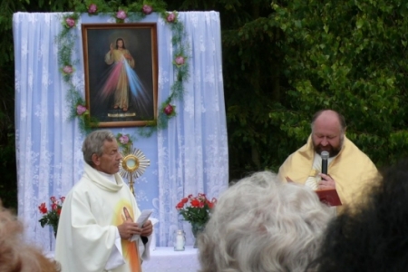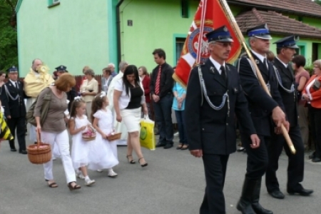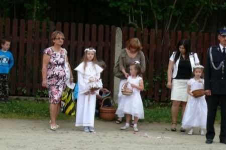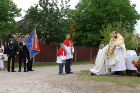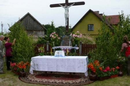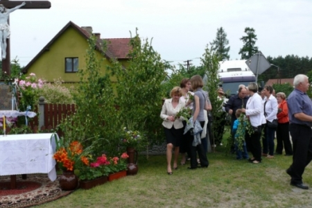 Ołtarze były usytuowane od państwa Krupy w stronę kościoła. Dziewczynki posypywały drogę procesji kwiatami, śpiewano pieśni ku czci Najświętszego Sakramentu, a nasi strażacy służyli pomocą niosącemu Święty Sakrament kapłanowi. To ważne kościelne święto licznie zgromadziło naszych mieszkańców, którzy oddali cześć Ciału i Krwi Pańskiej.