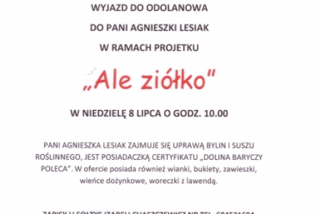 Pani Agnieszka Lesiak zajmuje się uprawą bylin i suszu roślinnego, jest posiadaczką certyfikatu „DOLINA BARYCZY POLECA”. W ofercie posiada również wianki, bukiety, zawieszki, wieńce dożynkowe, woreczki z lawendą.