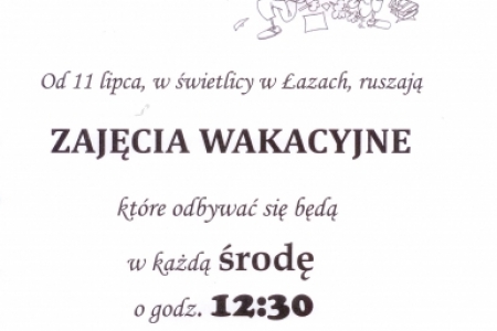 Od 11 lipca, w świetlicy w Łazach Małych, ruszają zajęcia wakacyjne dla dzieci i młodzieży, które odbywać się będą w każdą środę o godz. 12.30.