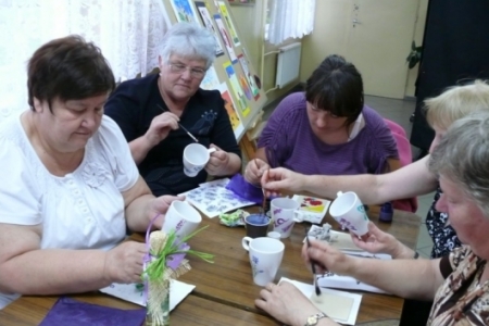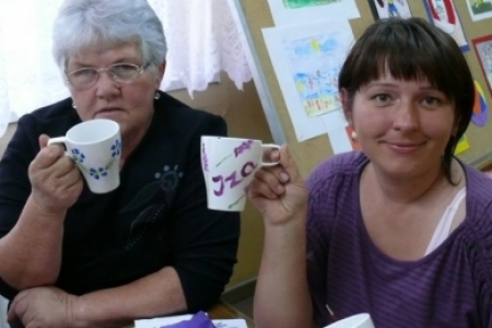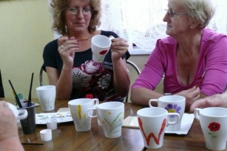 W piątek miałyśmy swoje warsztaty, a w poniedziałek pojechałyśmy z delegacją na zajęcia w Bukowicach. Sołtys Izabela Chaszczewicz przekazała Sołtys Bukowic II pani Bogumile Bialic wykonaną przez siebie butelkę z ziołami, a następnie przystąpiłyśmy do malowania kubków i kafelków specjalnymi farbami do ceramiki. Przeważały na rysunkach motywy lawendy, która pojawiła się na warsztatach z ziół, a także maki, chabry oraz motyle. Panie wykazały się niezwykłym talentem oraz umiejętnościami. Było to kolejne miłe i udane spotkanie w babskim gronie.