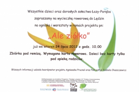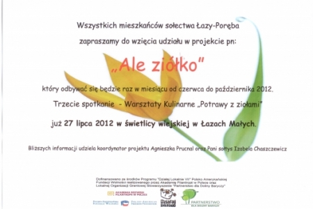 Tym razem zapraszamy na warsztaty kulinarne - Potrawy z ziołami, które odbędą się 27 lipca o godz. 17.30 w świetlicy wiejskiej, natomiast dzieci i młodzież zapraszamy na wycieczkę rowerową we wtorek 24 lipca do Lędzin. Zbiórka o godz. 10.00 pod remizą strażacką.