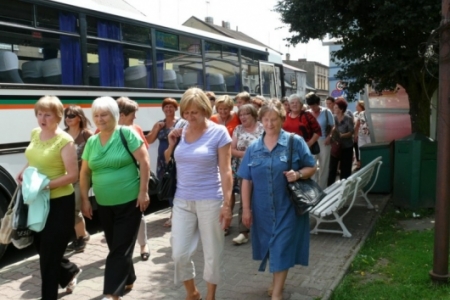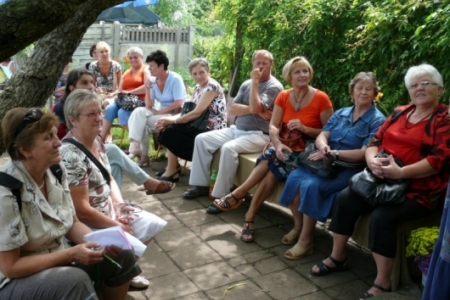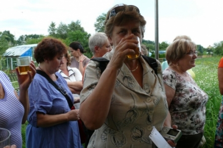 W wyjeździe brały udział 33 osoby – głównie panie, ale nie zabrakło również i panów. Pani Agnieszka prezentowała hodowane przez siebie odmiany roślin, opowiedziała o ich przeznaczeniu, a także o swojej ciężkiej pracy. Ponieważ swoje rośliny hoduje w dwóch różnych miejscach, mieliśmy okazję przespacerować się po Odolanowie i zobaczyć jakie to miłe i zadbane miejsce. Po dotarciu na właściwą działkę, uczestnicywycieczki zostali poczęstowani herbatką z mięty, która przy panującym upale była bardzo pożądana i wyśmienicie smakowała. Uczestnicy mieli również możliwość obejrzenia, a także zakupienia „efektów końcowych” pracy pani Agnieszki. Wielkim powodzeniem cieszyły się „warkocze kuchenne” z czosnku, które posiadają wspomniany wcześniej certyfikat.