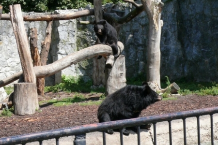 Obok znajdowały się wybiegi niedźwiedzi brunatnych (jeden z nich stawał na dwóch łapach) i himalajskich oraz wilków.