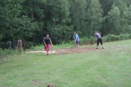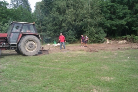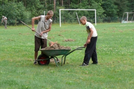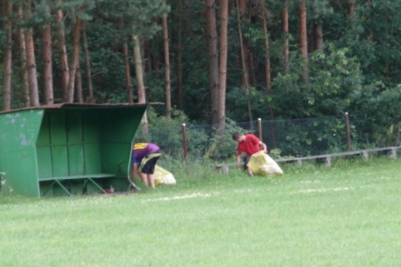 Dwa tygodnie poprzedzające festyn, to okres intensywnych prac na boisku sportowym w Łazach Wielkich. Zaniedbywany przez wiele lat teren wymagał teraz sporego nakładu prac, aby przywrócić mu choć odrobinę wcześniejszej świetności. Rozpoczęto od pozbierania śmieci i wykoszenia trawy zarówno na boisku, jak i w jego okolicy. Udało się również wyrównać teren za szatnią, na którym zlokalizowana była hałda ziemi. Po pracach „podwórkowych” przyszła kolej na szatnie. Jedno z pomieszczeń wymagało ponownego tynkowania, pozostałe zostały odmalowane, uruchomiono również toalety – wszystko to dzięki pomocy finansowej Wójta Mirosława Drobiny oraz wolontariackiej pracy piłkarzy i sympatyków klubu. Najpiękniejsze jest to, że nikogo nie trzeba było prosić i że tak wiele osób się zaangażowało. Szczególne podziękowania należą się: Bogdanowi Kowalowi, Ireneuszowi Iwanickiemu, Mariuszowi i Sylwii Iwanickim, Przemysławowi Motylowi, Piotrowi Skrzypczykowi, Krzysztofowi Naporze, Mateuszowi Warczakowi, Hubertowi Kulejowi i Krzysztofowi Chaszczewicz.