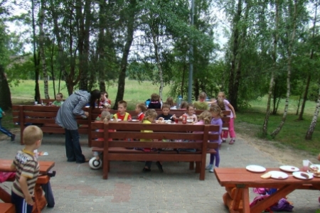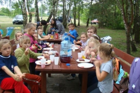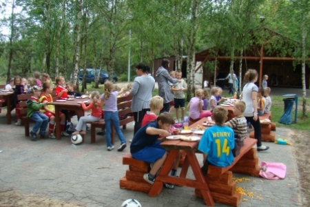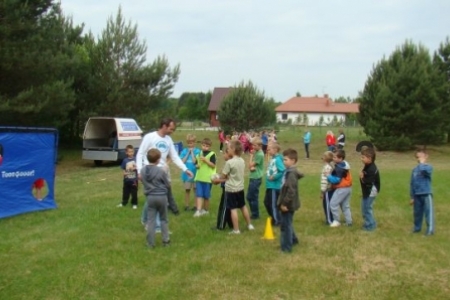 Atrakcją dla dzieci były zawody sportowe, które prowadzili pracownicy GOSiRu w Twardogórze, dmuchany zamek oraz basen z kolorowymi kulkami. Miło było patrzeć na uśmiechnięte dziecięce buzie! W przerwie między zawodami, a zabawą dzieci zajadały pieczone kiełbaski oraz pyszne lody i ciasto upieczone przez rodziców. Były też tańce, a chłopcy zorganizowali mecz w piłkę nożną. Zabawa trwała do godz. 14.00. Dzieci z żalem ale w dobrym humorze opuszczały Bukowinkę. Obiecały, że wrócą za rok!!!