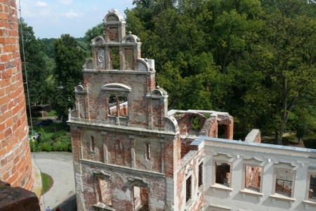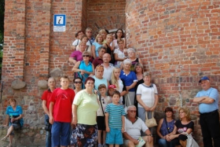 Nasza wycieczka zakończyła się w Żmigrodzie, gdzie obejrzeliśmy ruiny pałacu Hatzfeldtów, wieżę mieszkalno-obronną (basztę) i zabytkowy park z pomnikami przyrody. Tutaj czekała na nas nasza mieszkanka Pani Agnieszka Prucnal, która obecnie pracuje w Stowarzyszeniu Gmin Turystycznych Wzgórz Trzebnickich i Doliny Baryczy, które ma siedzibę w baszcie.