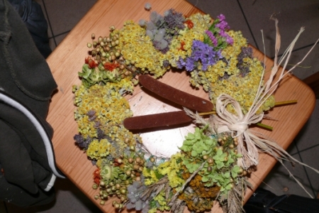 W piątek 10 sierpnia odbyło się już 4 spotkanie w ramach projektu „Ale Ziółko”. Tym razem tematem przewodnim był susz roślinny. W warsztatach wzięło udział ponad 25 osób z Łaz i Bukowic. Panie skupiły się na „wytwarzaniu” różnego rodzaju wianków, zarówno z roślin suszonych, jak i żywych. Prowadząca warsztaty, Pani Beata Piekalska zaprezentowała nam również jak można przy wykorzystaniu różnych suszonych roślin zrobić obrazki, a przede wszystkim opowiedziała jak najlepiej te rośliny suszyć. Mieszkanki Łaz dyskutowały w międzyczasie o koncepcji wieńca dożynkowego. Po tak wyczerpującej pracy twórczej zasiadłyśmy wspólnie przy ciastku i pani Beata scharakteryzowała nam kolejny projekt, w którym będziemy mogły wziąć udział.