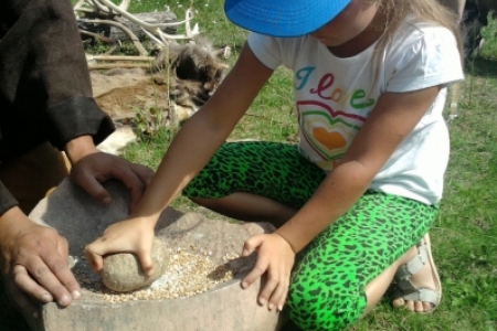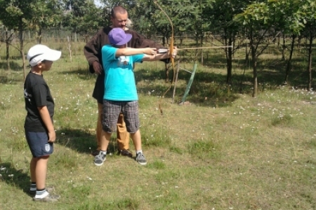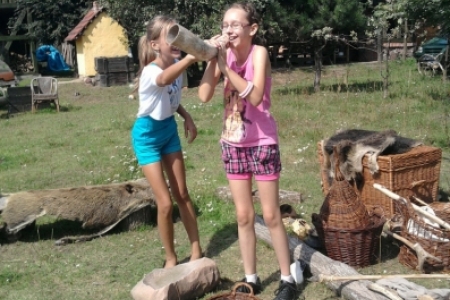 W środę 29 sierpnia byliśmy w Lędzinie u pani Beaty Piekalskiej, gdzie specjalnie dla nas przyjechał z Wrocławia pan Marcin-archeolog. Pokazywał i opowiadał jak kiedyś robiono mąkę, polowano na zwierzęta.Mogliśmy spróbować swoich sił w strzelaniu z łuku i rzucaniu dzidą. Oglądaliśmy różne poroża i rogi oraz bardzo prymitywne narzędzia np. siekierę, której grot był zrobiony z krzemienia lub poroża oraz motykę, której górna część także była zrobiona z poroża. Pan Marcin pozwolił nam użyć tych narzędzi. Warto dodać, że słuchając tych opowieści siedzieliśmy w kręgu na skórach zwierzęcych, które były bardzo wygodne.