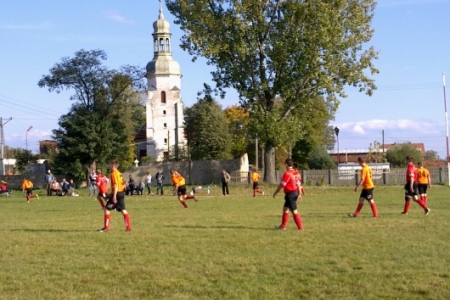 Po raz kolejny nasza drużyna wraz z kibicami pojechała na mecz wyjazdowy. Warto podkreślić, że zawodnikom towarzyszyło ponad 30-tu kibiców, zawodników rezerwowych i sztabu szkoleniowego. Mecz rozpoczął się dla nas nieszczęśliwie, bo już w 3 minucie nasz trener musiał dokonać zmiany, z powodu kontuzji zawodnika. Nie przeszkodziło to naszej drużynie zdobyć dwóch goli już w pierwszej połowie w 20 i 30 minucie meczu. Pierwszego gola zdobył Adrian Szymczyk, który zachował zimną krew i w zamieszaniu w polu karnym skierował piłkę do siatki. Drugi gol wpadł w iście brazylijskim stylu – strzałem z przewrotki popisał się Kamil Domagała. W drugiej połowie poziom meczu się wyrównał, ale mimo wielu okazji z obu stron, wynik nie uległ zmianie.