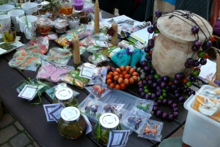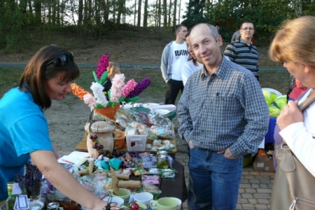Nasze stoisko cieszyło się popularnością – zwłaszcza kolorowe drewniane korale, i znów udało się nam choć odrobinę podreperować wioskowy budżetJ