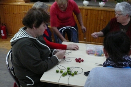 Przedstawicielki Łaz ponownie odwiedziły koleżanki z Bukowic. Tematem warsztatów była drewniana biżuteria, która nawiązuje do projektu „Wioska drewna”. Uczestniczki wykonały piękne kolorowe korale oraz bransoletki. Po pracy przyszła kolej na rarytasy. Próbowałyśmy wyśmienitych swojskich serów, masła, powideł wykonanych przez panią Beatę Piekalską w jej gospodarstwie w Lędzinie