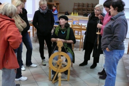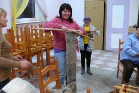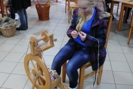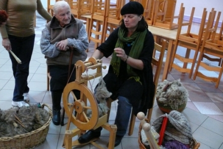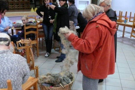 Wracamy do czasów naszych babć i prababć. Kto w dzisiejszych czasach słyszał o przędzeniu wełny? Kołowrotek? – dawno zniknęły z naszych domów, niektóre z nas wcale ich nie widziały. Wrzeciono? Ta sama historia, no chyba że uwzględnimy bajkę o śpiącej królewnie… A jednak są jeszcze osoby i to w naszej miejscowości, które prząść wełnę potrafią. A młodsze pokolenie, które jeszcze te przyrządy pamięta i to jeszcze młodsze, które nie pamięta i nie zna, mogło spróbować własnych sił w tym rzemiośle – początki były trudne, ale miejmy nadzieję, że z czasem będzie lepiej.