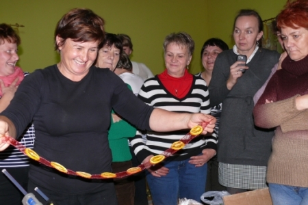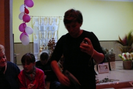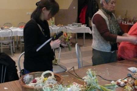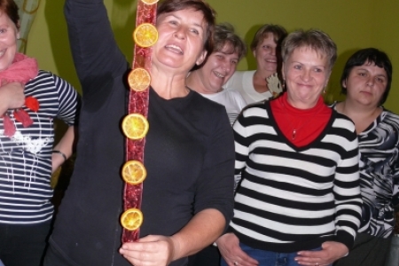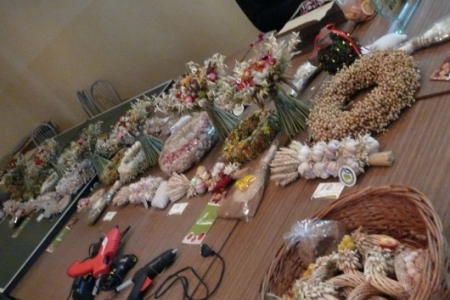 Warsztaty odbyły się tym razem w Pakosławsku, a prowadzone były przez znaną już u nas Panią Agnieszkę Lesiak, która zajmuje się hodowlą suszu roślinnego. Pani Agnieszka pokazała nam jak zrobić bukiet z suszu oraz ciekawą zawieszkę do kuchni. Następnie zaprezentowała nam jak wykonać proste i atrakcyjne dekoracje bożonarodzeniowe: wianuszek, kulę z szyszek, dekorację okienną z wstążki i plastrów pomarańczy.