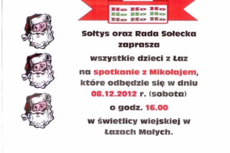 Zapraszamy wszystkie dzieci na spotkanie z Mikołajem do świetlicy w Łazach Małych, które rozpocznie się w sobotę 8 grudnia o godz. 16.00.