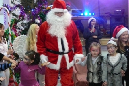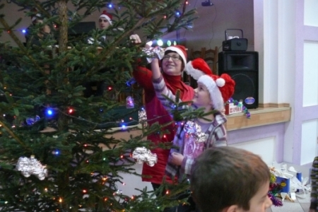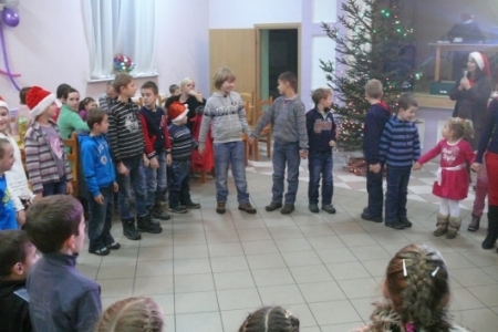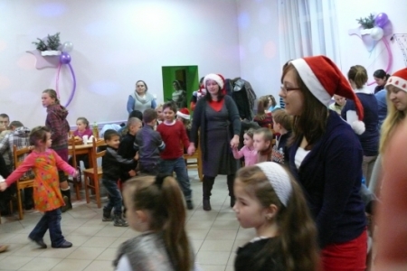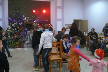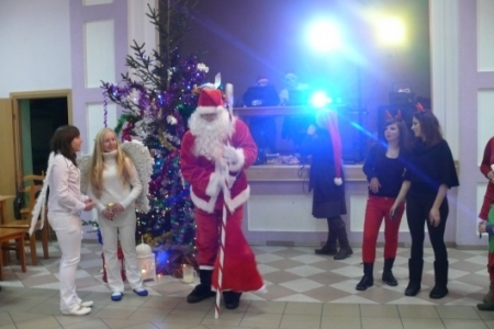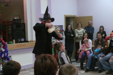 Jak co roku dla dzieci przygotowano słodki poczęstunek: ciasta upieczone przez mieszkanki Łaz, ciastka, galaretki, jabłka, popcorn, soki oraz herbatę. Aby umilić czas oczekiwania na przybycie Św. Mikołaja dzieci miały możliwość przystrojenia choinki, a następnie zabawy przy muzyce. Atrakcją tego dnia był występ iluzjonisty - niektóre dzieci miały okazję mu asystować. Oczywiście najbardziej oczekiwanym gościem tego wieczoru był Mikołaj. Pani Sołtys poprosiła magika, żeby pomógł dzieciom wyczarować Św. Mikołaja. Dziewięćdziesiąt dzieci przywołało Mikołaja: ”sim sala bim przybądź Mikołaju”… i Mikołaj zjawił się wraz ze swoją świtą: aniołami i diabełkami. Mikołaj rozmawiał z każdym dzieckiem, niektóre mówiły wierszyk lub śpiewały piosenkę i każde otrzymało prezent. Gdy już wszystkie paczki zostały rozdane, dzieci podziękowały Mikołajowi i pożegnały się z nim, a Mikołaj obiecał że za rok znowu wróci do Łaz. Gdy już paczki zostały rozpakowane, dzieci wróciły do zabawy przy muzyce, która trwała do godz. 20tej.