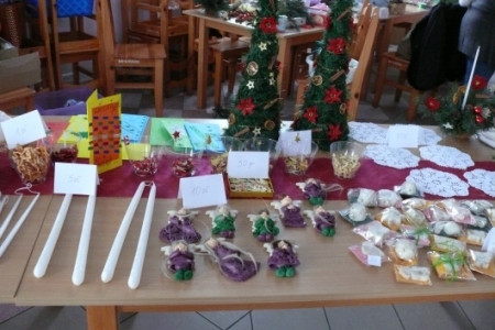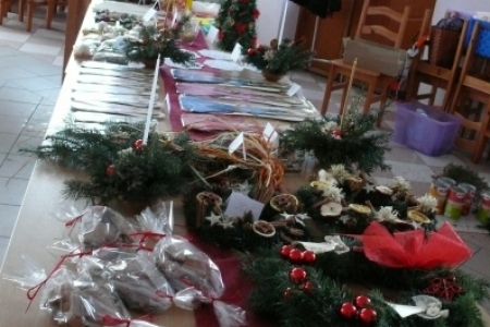 W niedzielę 9 grudnia w godz. 13.00 – 16.00 odbył się w świetlicy wiejskiej w Łazach Małych kiermasz bożonarodzeniowy. Większość sprzedawanych wyrobów była własnoręcznie wykonana przez mieszkanki Łaz, które chętnie wykorzystują wiedzę zdobytą podczas realizowanych projektów „Ale Ziółko” oraz „Akademia tradycji i rękodzieła – przez sztukę do wiedzy”. Na kiermaszu można było kupić własnoręcznie wykonane kartki z życzeniami, wianki na drzwi, stroiki świąteczne, bombki zdobione cekinami i wstążkami, choinki z szyszek i makaronu, wydziergane na szydełku serwetki, aniołki, bombki, dzwoneczki, wykonane z masy solnej anioły oraz anioły z drewna oraz pachnące pierniczki na choinkę. Największym powodzeniem cieszyły się jak zwykle, wykonane przez panią Agnieszkę Prucnal, mieszkankę Łaz Wielkich, aniołki z masy solnej.