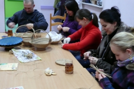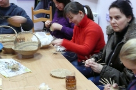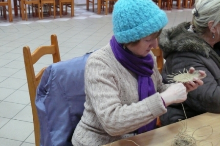 W piątki 11 stycznia, 8 i 15 lutego odbyły się w świetlicy w Łazach warsztaty w ramach projektu „Akademia tradycji i rękodzieła –przez sztukę do wiedzy” z Programu Operacyjnego Kapitał Ludzki, który jest współfinansowany ze środków UE w ramach Europejskiego Funduszu Społecznego. Uczestniczki projektu przystąpiły do dalszej nauki wyplatania naczyń z loomu. Tym razem w związku ze zbliżającymi się już Świętami Wielkanocnymi prowadzący zajęcia uczył wyplatać koszyczki. Zajęcia odbywają się 2 razy w miesiącu do końca kwietnia. Do świąt tematyką warsztatów będą dekoracje wielkanocne.