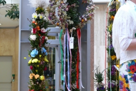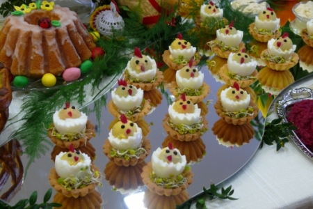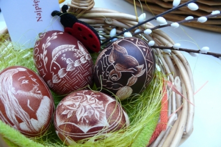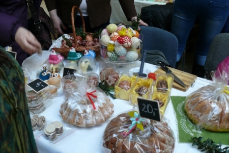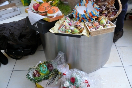 Była to okazja podglądnięcia jak taka impreza wygląda i co inne panie mają w ofercie wielkanocnej. A było co oglądać: królowały pisanki wykonane różnymi technikami, dekoracje stołów i potraw wielkanocnych zapierały dech w piersiach, przepiękne palmy, wianki i stroiki, baranki, kurki, koguciki, a wszystko piękne kolorowe jak wiosna, która niestety nie zamierza w tym roku tak szybko do nas zawitać.