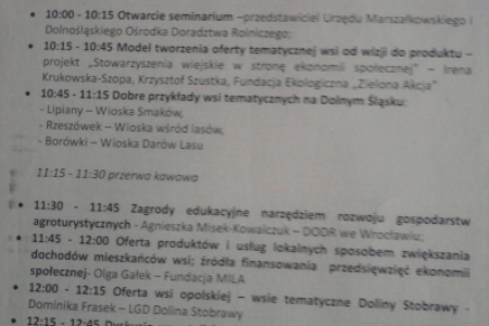 Podczas spotkania zaprezentowały się również wsie tematyczne z Dolnego Śląska - Lipiany Wioska Smaków, Rzeszówek Wioska wśród lasów, Borówki Wioska Darów Lasu, jako dobre przykłady wsi tematycznej.