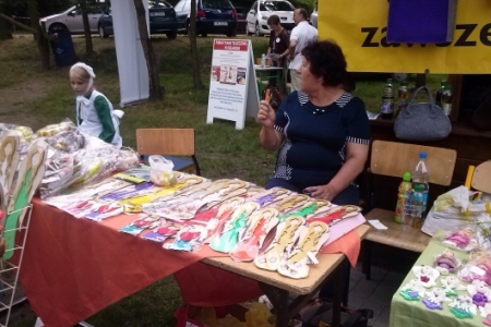 W niedzielne popołudnie 16 czerwca na zaproszenie Pana Aleksandra Kowalskiego, właściciela "Ostoi" i organizatora "Świętojanek nad Baryczą", stawiłyśmy się z naszymi wyrobami na Ostoi. Pogoda nie spłatała figla – była piękna! Szkoda, że nie dopisali odwiedzający. Dla żołądka kiełbaska z grilla, wędzony karp oraz pyszna darmowa zupa grochowa. Z Rudy Milickiej przyjechały ciasta, nalewki i miody. Gości zabawiał zespół Pierstniczanie i największa atrakcja – zespół Marciny z Marcinowa z Tomaszem Kowalskim, zwycięzcą poprzedniej edycji polsatowskiego „Must be the Music”. Pamiątkowe zdjęcie z naszą mieszkanką! Radością dla nas było duże zainteresowanie naszymi pięknymi koralami i aniołami.