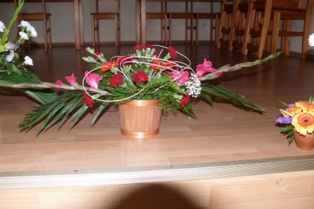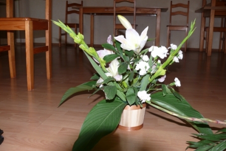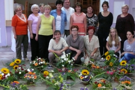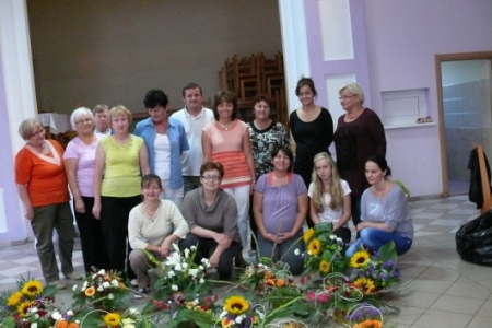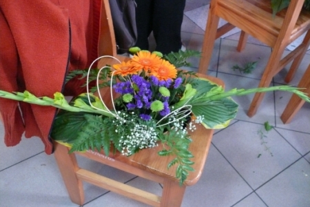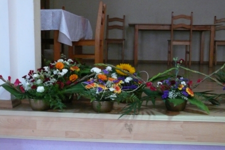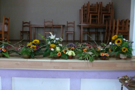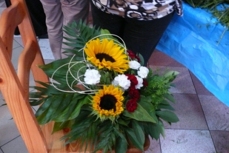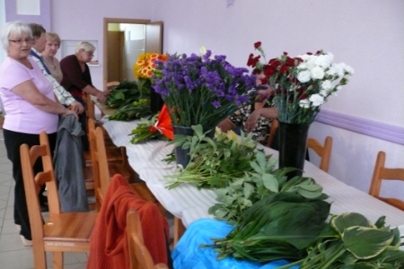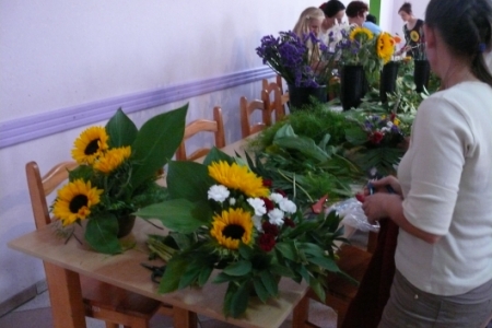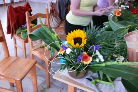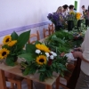 Stoły zapełniły się cudnymi kwiatami – słoneczniki, margaretki, goździki, mieczyki, zatrwian i różnorodne, piękne liście.