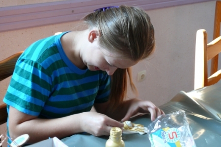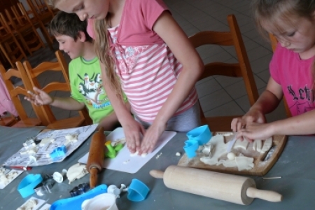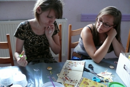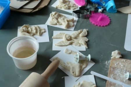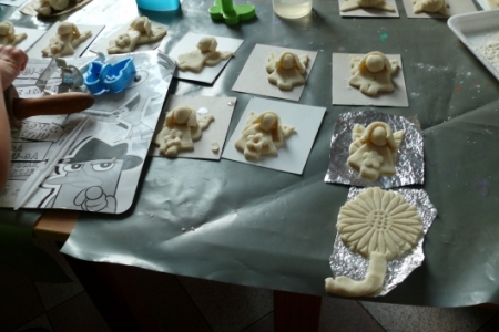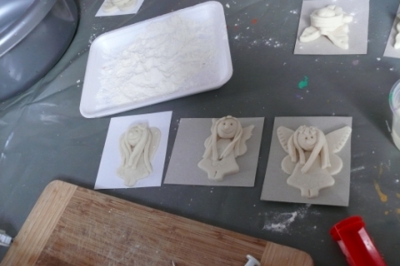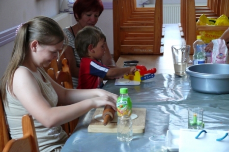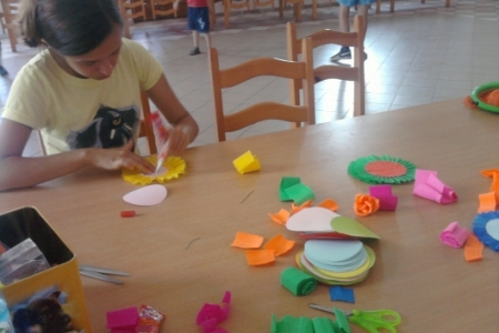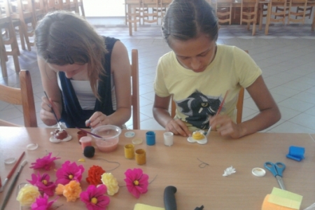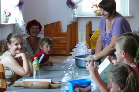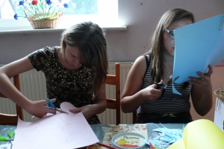 We wtorki zajęcia artystyczne prowadzone były przez członkinie Stowarzyszenia „Aktywne Łazy”. Podczas zajęć dzieci wykonywały rękodzieło m.in. aniołki i inne ozdoby z masy solnej, które na następnych warsztatach były malowane. Na innych zajęciach wykonywały wisiorki metodą decoupage, na kolejnych malowały kubki. Przygotowane zostały również kotyliony na festyn.