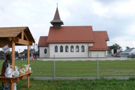 Natomiast w niedzielę zostaliśmy zaproszeni do Ostrowąsów, gdzie odbywała się konsekracja nowo wybudowanego kościoła. Tu największym zainteresowaniem cieszyły się drewniane obrazki z roślinami oraz nasze ciasto.