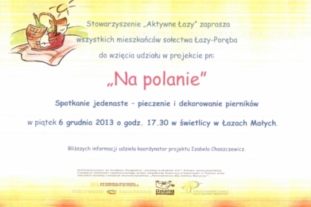 spotkanie jedenaste - pieczenie i dekorowanie pierników, które odbędzie się 6 grudnia 2013r. o godz. 17:30 w świetlicy w Łazach Małych.