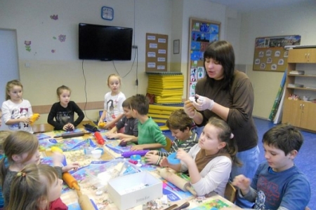 10 grudnia – to dopiero było wyzwanie - 2 przedstawicielki stowarzyszenia Izabela Chaszczewicz i Maria Gradzik poprowadziły warsztaty z masy solnej dla kl. 2b z Zespołu Szkół w Bukowicach.