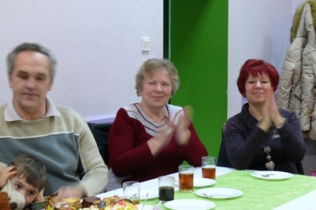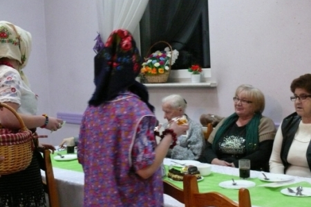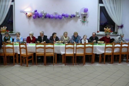 Na stołach czekały na nich przepyszne ciasta upieczone przez mieszkanki Łazów, natychmiast pojawiła się kawa i herbata, ze sceny płynęły piosenki z lat 70 serwowane przez niezawodną Igę, a przed sceną czekała grupa dzieci i młodzieży „Łazanki” z programem dla kochanych gości.