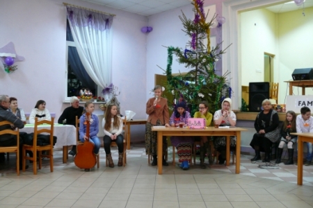….i popłynęły piękne pastorałki, piosenki wykonywane przez nasze utalentowane dzieci i młodzież : Adę, Dorotę, Magdę z gitarą, z którą chętnie śpiewali zaproszeni goście! Z zachwytem i łezką w oku słuchali goście piosenki najmłodszych artystów – Majki, Juli i Szymona, a już wielki aplauz wzbudziły ciepłe wiersze do Babci, do Dziadka w ich wykonaniu.