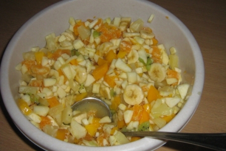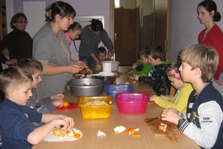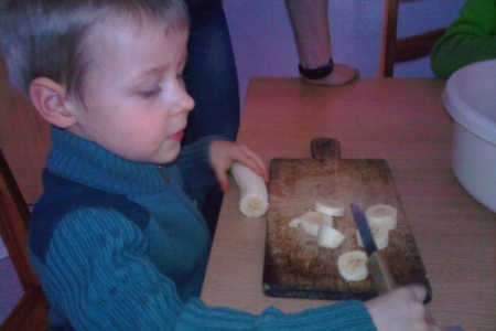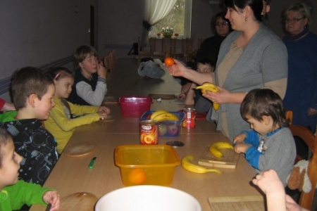 19 lutego dzieci przygotowały sałatkę owocową. Nawet te najmłodsze świetnie poradziły sobie z krojeniem bananów, jabłek, kiwi, ananasów, brzoskwiń i mandarynek.