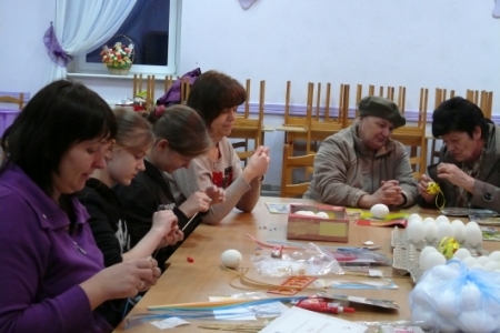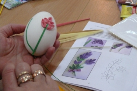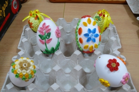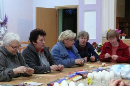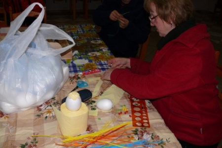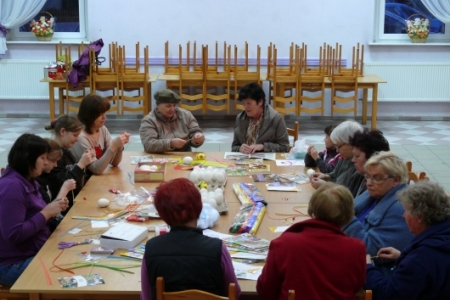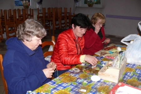 W piątek 21 i 28 marca grupa aktywnych mieszkanek Łaz przy wsparciu Stowarzyszenia „Aktywne Łazy” spotkała się w świetlicy wiejskiej na warsztatach wielkanocnych. Podczas spotkania panie poznawały nową technikę zdobienia pisanek – quilling. Ta metoda zwijania wąskich paseczków papieru jest bardzo żmudna, ale efekt końcowy jest imponujący, co też bardzo spodobało się uczestniczkom. Drugą metodą którą panie wykorzystały do dekoracji pisanek był decoupage.