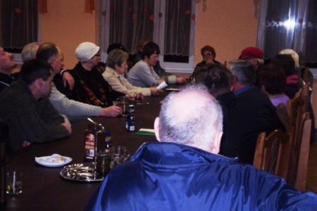Sołtys Teresa Duda zwołała zebranie wiejskie w dniu 15 marca 2013 roku. Spotkanie odbyło się o godzinie 19.00. Podczas zebrania podjęto uchwałę nr 1/2013 o przyjęciu sprawozdania z realizacji zadań w ramach funduszu sołeckiego za 2012 rok. Sołtys przedstawiła także wykaz zakupionych rzeczy za pieniądze z wynajmu świetlicy.