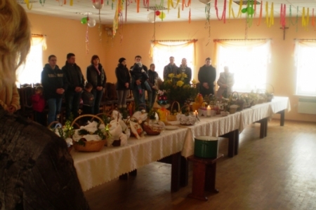 W Wielką Sobotę wierni zbierają się w świątyniach , kaplicach i przed krzyżami w sołectwach ,gdzie odbywa się święcenie pokarmów i tak też było w świetlicy wiejskiej w Miłosławicach.Święconka rozpoczęła się o godzinie 11.30 dnia 30.03.2013 roku.Pokarmy poświęcił ks. wikary Tomasz Bednarczuk. Mieszkańcy przynieśli pięknie przystrojone koszyki ,przybrane bukszpanem i białymi serwetkami. W koszyczkach znalazły się różne produkty m.in. chleb , jajka wędliny , sól , chrzan , babka wielkanocna i baranek. Chleb święci się na pamiątkę Jezusa Chrystusa , który jest chlebem życia.Jajko to symbol początku , nowego życia oraz narodzin i zmartwychwstania .Wędliny symbolizują dostatek i zamążność .Sól oznacza prostotę życia , a chrzan ma przypominać nam o pokonaniu przez Chrystusa goryczy jego męki.Baranek natomiast symbolizuje zmartwychwstanie Chrystusa oraz jego ofiarę za grzechy ludzi.