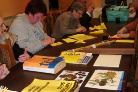 Tym razem na warsztatach mieszkańcy dnia 17.04.2013 r. zgromadzili się ,aby wykonać wspólnie kusudamę.