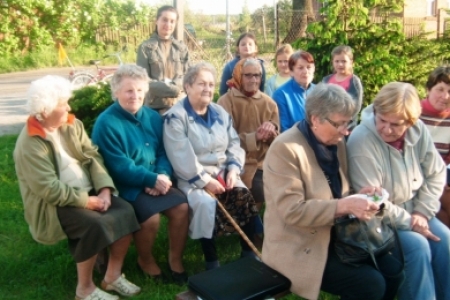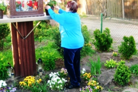 W Miłosławicach przez cały maj koło Krzyża również mieszkańcy wspólnie modlą się i śpiewają pieśni ku czci Matki Bożej .