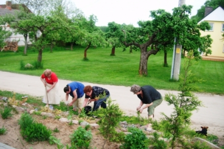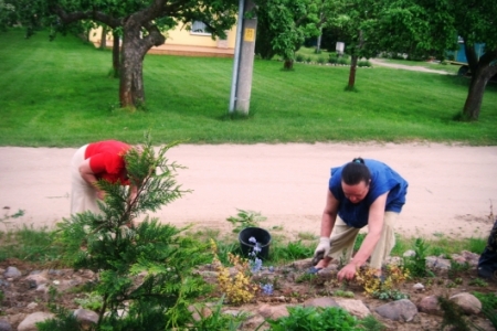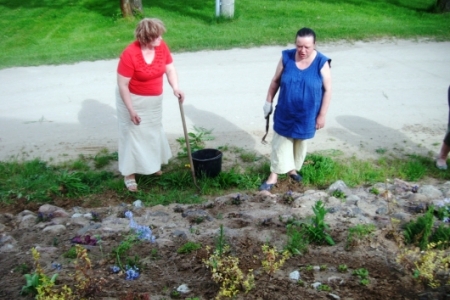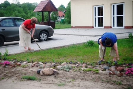Dzisiaj Teresa Duda,Kazimiera Gierula ,Krystyna Szablewska , Matylda Niećko ,Zbigniew Duda i Anna Duda posadzili kwiaty przed świetlicą i usuneli wszelkie zarośla ze skarpy.