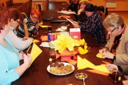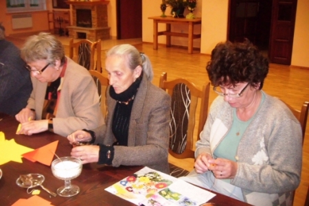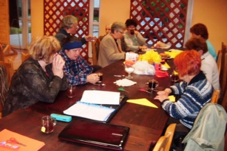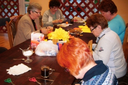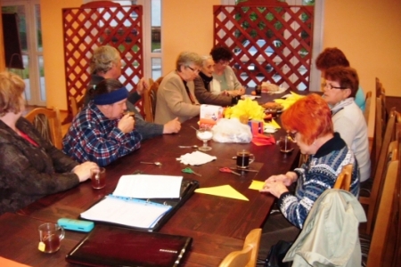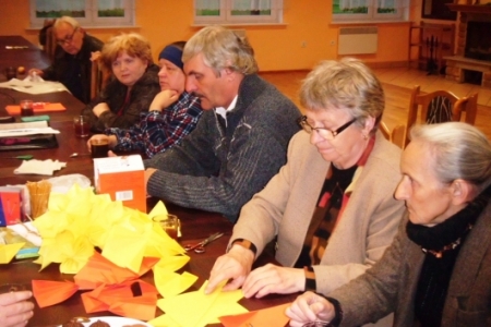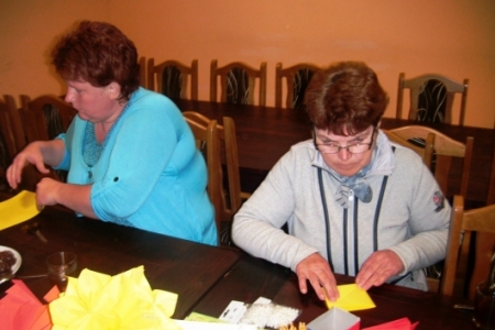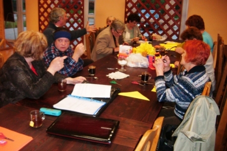 Po krótkiej przerwie znowu spotykamy się na zajęciach artystycznych.Spotkanie odbyło się 22.05.2013 r.o godz. 20.00 świetlicy w Miłosławicach. Panie wykonywały z papieru wielkie kule ozdobione koralikami i kwiatkami z materiałów.Pani Jadwiga pokazała sposób wykonania kwiatków z kordonka za pomocą szydełka.