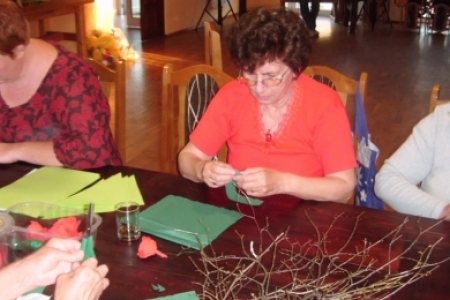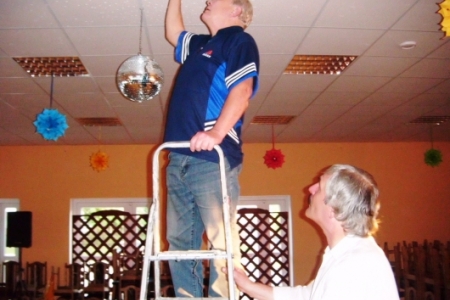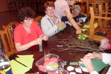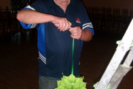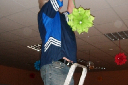 Dnia 12.06.2013 r. na warsztatach grupa artystyczna wykonywała z serwetek róże na kiermasz w ,,Ostojach ''Panowie zawieszali wcześniej przygotowane kule z papieru mocując je do sufitu.