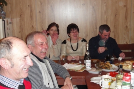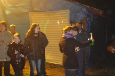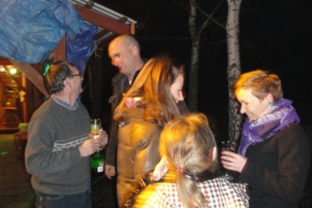 Wieczorem wszyscy pełni dobrego humoru i nadzieji na przyszły,lepszy NOWY ROK zebrali na placu i zaczeła sie wspólna impreza. Płoneło ognisko, błyły tańce, dobra zabawa i pyszne "jedzonko". O północy życzeniom i uściskom nie było końca