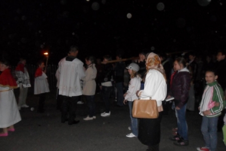 Duży krzyż niesiony na ramionach matek, ojców, dzieci, młodzieży - blask pochodni, rozważania przy kolejnych stacjach czytają przedstawiciele różnych grup wiekowych i róznych miejscowości. Wieczorem pani Gienia układa dekoracje z kwiatów, strażacy z Pakosławska i Brzeziny wystawiają wartę przy grobie.