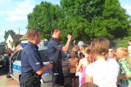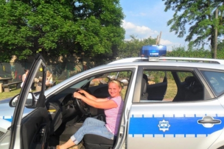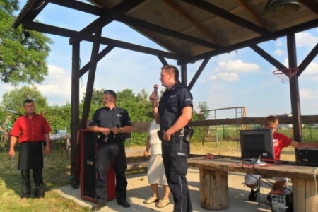 Imprezę zaszczycił ks.Proboszcz, który ciepło przemówił do zebranych - a gadane to ma! Potem na sygnale wjechał policyjny radiowóz- dzielnicowy Łukasz Łukowiak ze swoim kolegą pokazywali dzieciom sprzęt policyjny i nie tylko.Dzieciaki ładowały się do policyjnego wozu. Przyszedł czas na kiełbaski z grilla obsługiwanego przez pp. Kuriatów.